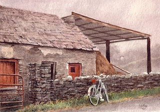This one is a self portrait, painting in one of my favorite spots to paint. From this perch, a third of the way down the cliff to the shore on the west side of Lopez Island, WA, I can watch the boats move in and out of Fisherman Bay and sail the waters between Lopez and San Juan Island. This view has inspired many paintings, including "In The Channel", "Kayakers" and "The Gate", featured elsewhere on this blog. The above painting was accepted for the 30th Elkhart Juried Regional Exhibit at the Midwest Museum of American Art. NFS
